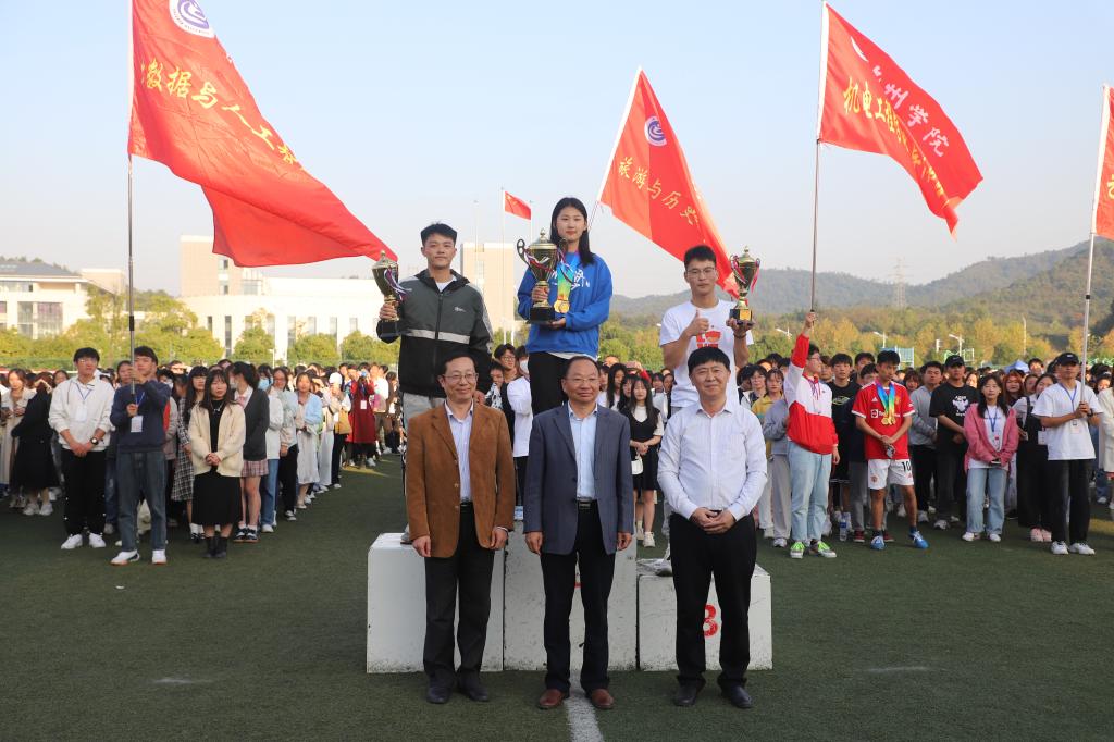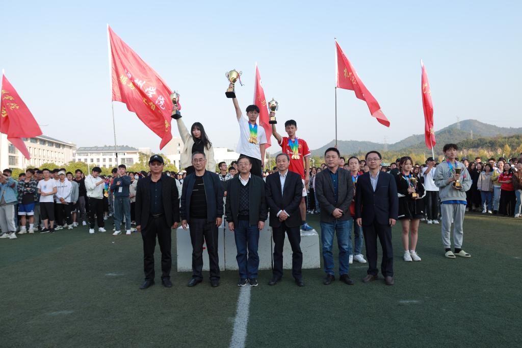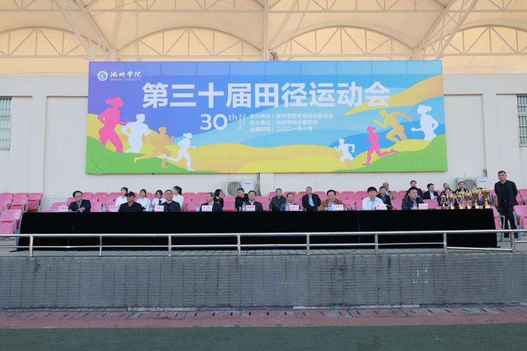 10月29日下午,77779193永利官网第三十届田径运动会圆满落幕。校党委副书记崔国发,校党委委员、副校长王延寿,校党委委员、校纪委书记、监察专员汪海,校党委委员、副校长汪贤才,校党委委员、组织部长李恕宏,校党委委员、人事处长黄海生,校党委委员、宣传部长胡兵,以及本届田径运动会组委会全体成员在主席台就坐。