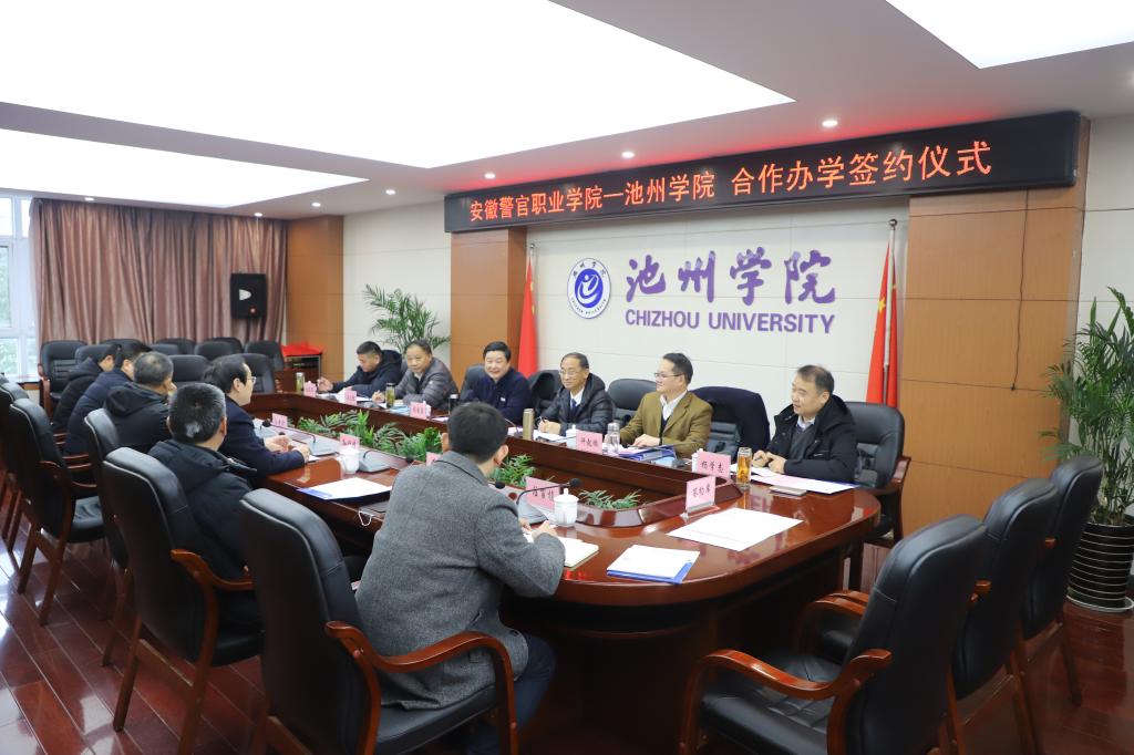 1月5日上午,77779193永利官网与安徽警官职业学院合作办学签约仪式在行政北三楼会议室举行。院党委书记孙晓峰,党委委员、副院长阳光宁和安徽警官职业学院党委书记张国昌,党委委员、副院长周善来出席签约仪式。