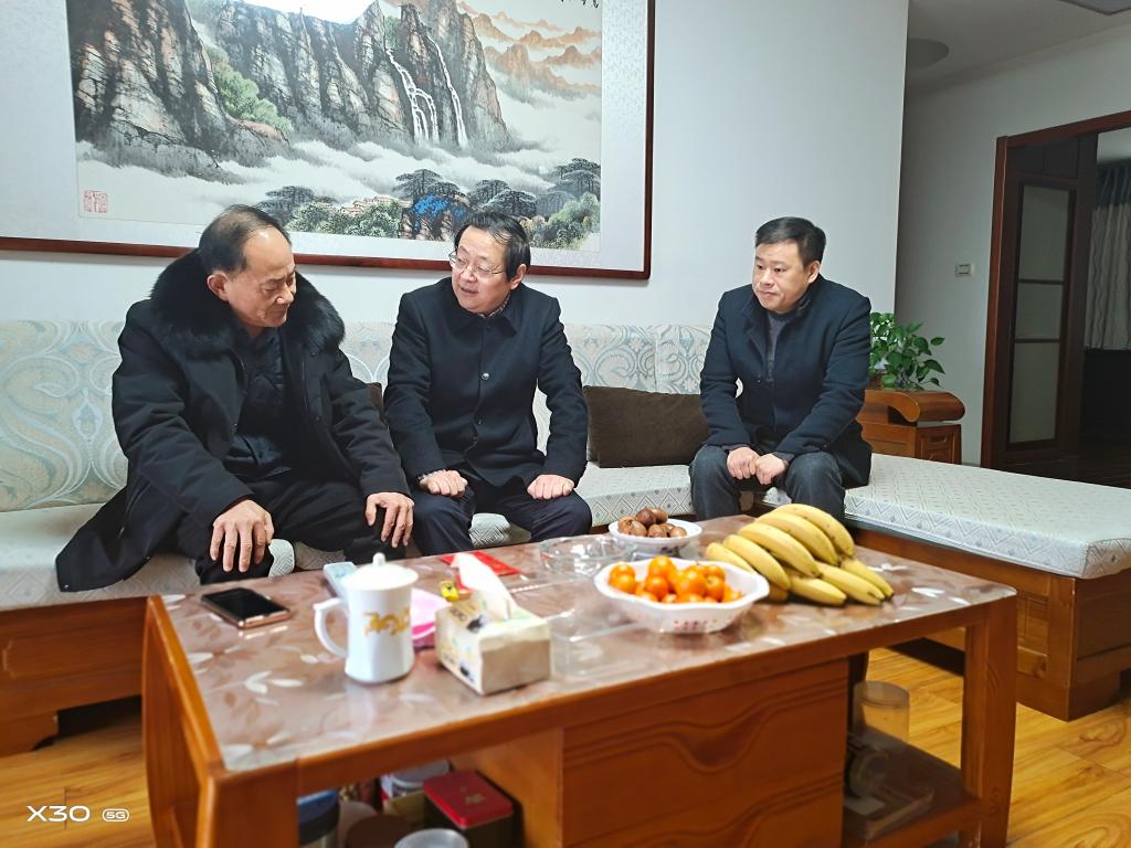 在退休老领导张友伯家中,孙晓峰介绍了一年来学校各项事业的发展情况,认真听取了老领导对学校发展工作的意见,感谢老领导为学校建设发展作出的贡献,希望他一如既往地关心和支持学校的工作,继续为学校的建设发展建言献策。