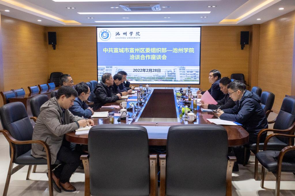 2月28日下午,宣城市宣州区委常委、组织部长朱伟一行4人来校洽谈校地合作相关事宜。学校党委副书记崔国发出席并主持会议。