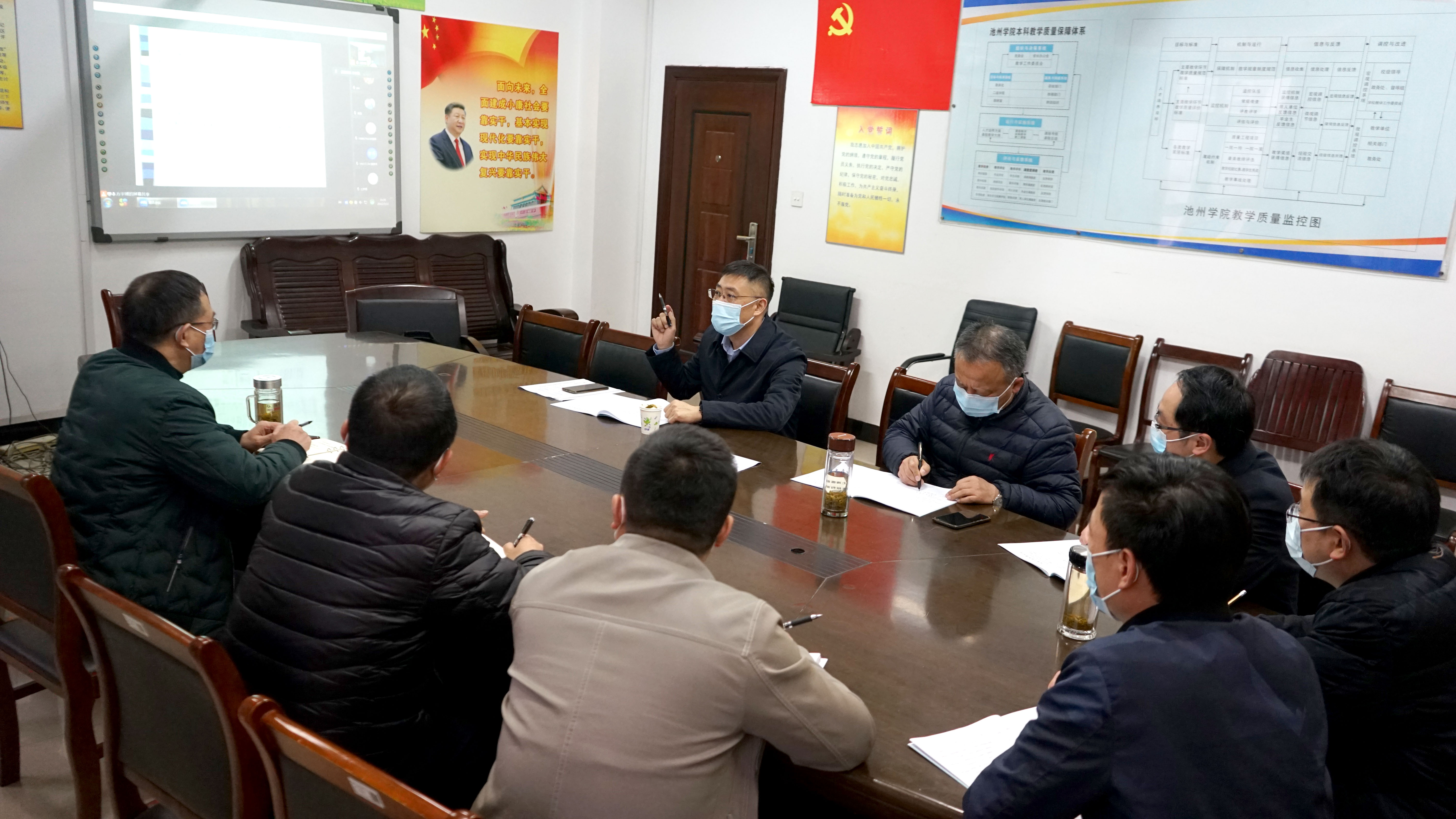 3月22日下午,院长张立驰在教务处会议室调研指导学校线上教学工作,副院长阳光宁陪同。