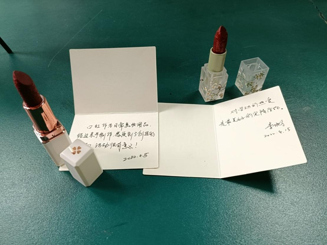 本次活动将化学与时尚结合、理论与实践结合的理念融入进了口红制作中,让不同专业的广大同学亲自参与实验操作,体会科学实践的魅力,教育和引导同学们在科技创新的道路上脚踏实地、稳步前进、不断开拓进取。