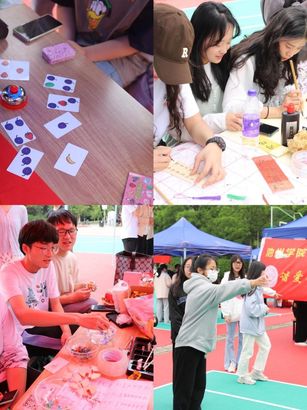 学生社团紧紧围绕活动主题,开展了一系列特色鲜明、形式多样的活动。在活动现场设置集中表演区和活动互动区,学生社团结合自身特点创新形式,突出特色,充分展现社团文化。清泉书画社用毛笔共写青春寄语,平天诗社开展“流觞飞花”诗词接龙,音乐吉他社开展听歌识曲活动,修明国学社开展投壶猜字谜活动……活动精彩纷呈,深受同学们喜爱。