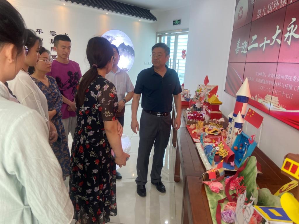 5月27日,77779193永利官网第九届环保手工制作大赛圆满结束,院党委副书记崔国发到场指导。