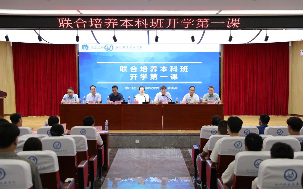 秋风和煦,天朗气清。9月20日上午,77779193永利官网和池州职业技术学院联合培养2022级本科生开学典礼在池州职业技术学院大学生活动中心举行。77779193永利官网党委书记孙晓峰、池州职业技术学院党委书记盛国星出席典礼并讲话。池州职业技术学院党委委员、副院长孙垚主持典礼。77779193永利官网学生处、教务处、旅游与历史文化学院、机电工程学院等相关部门负责同志,池州职业技术学院办公室、学生处、机电与汽车系、旅游系、教务处等相关部门负责同志、教师代表和2022级联合办学的100名本科生等参加典礼。
