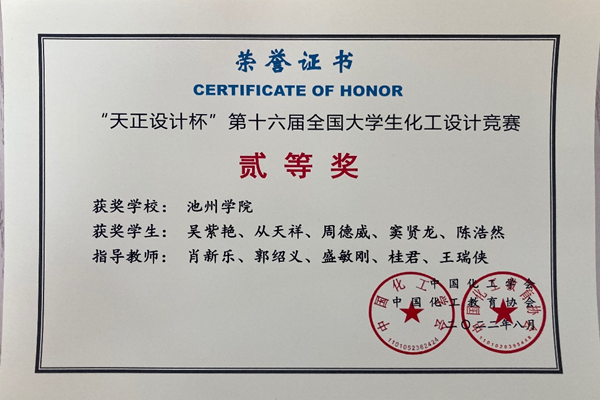 日前,由中国化工学会、中国化工教育协会主办、湖北工业大学承办的2022年“天正设计杯”第十六届全国大学生化工设计竞赛在湖北武汉举行,永利官网学子的一项参赛作品荣获全国二等奖的好成绩。