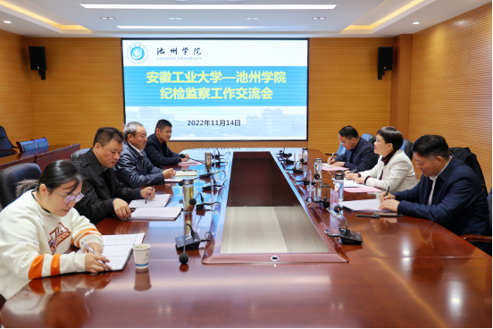 11月14日,安徽工业大学党委常委、纪委书记、监察专员潘淑琴一行来校就政治监督、日常监督、廉政教育等纪检监察工作进行交流。院党委委员、纪委书记、监察专员汪海主持召开座谈会。