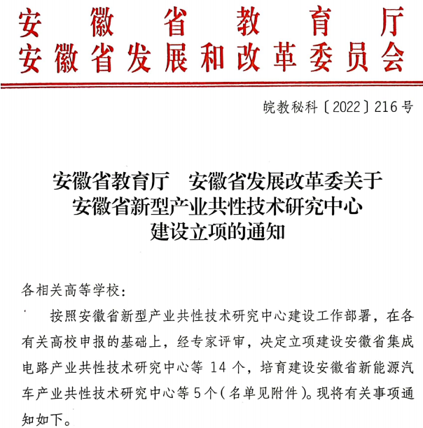 近日,省教育厅、省发改委下发了《安徽省教育厅 安徽省发展改革委关于安徽省新型产业共性技术研究中心建设立项的通知》,由永利官网和池州市政府牵头申报的“安徽省半导体产业共性技术研究中心”(简称共性技术研究中心)成功获批。