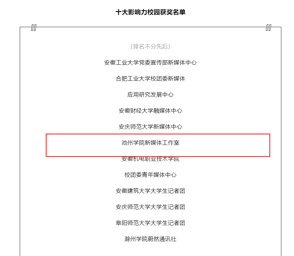 与此同时,11月5日至21日,永利官网新媒体工作室在中国青年报·中青校媒(安徽)2022年度“新媒体作品征集”活动中荣获“十大影响力校园媒体”,六项优秀作品被表彰与征集展出。