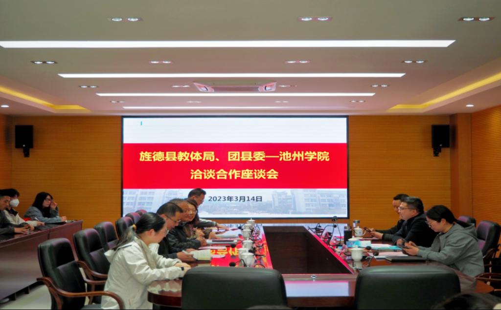 3月14日下午,共青团旌德县委书记张旭涛、旌德县教体局副局长姚菊霞、宣城旅游学校副校长童德明等一行三人来永利官网就深化校地校企合作开展交流。院党委委员、副院长阳光宁出席座谈会。