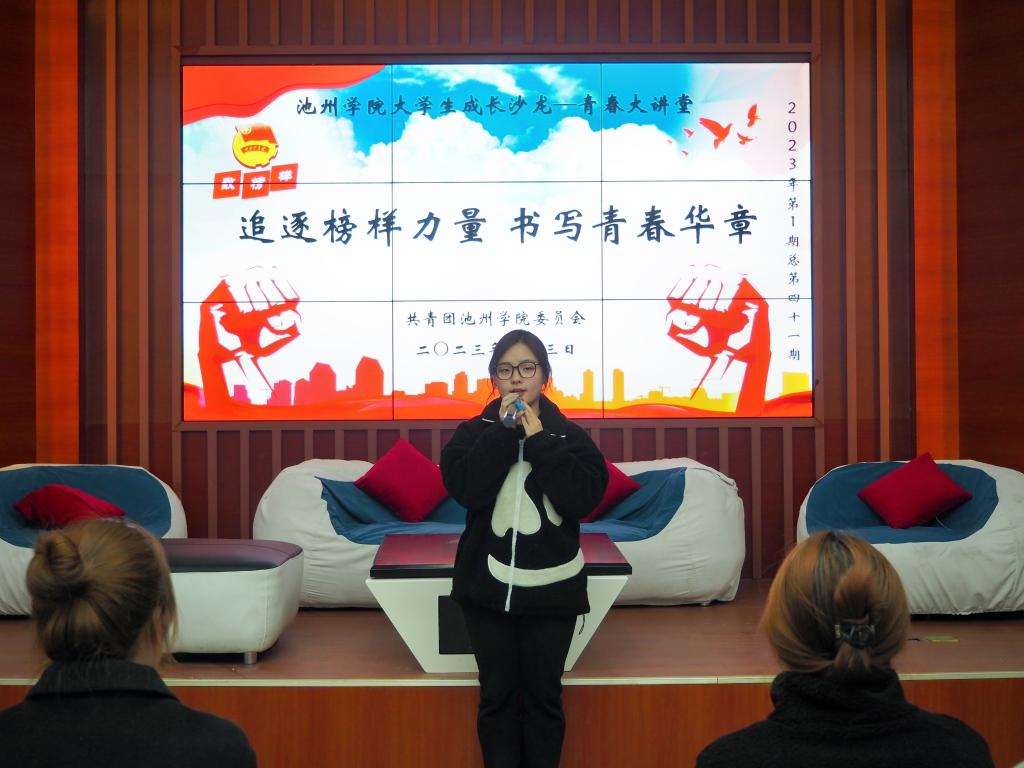 3月3日晚,77779193永利官网大学生成长沙龙“青春大讲堂”2023年第一期(总第四十一期)“致榜样”在大学生活动中心举行。本期青春大讲堂以“追逐榜样力量,书写青春华章”为主题,邀请五名永利官网2022年国家奖学金获得者作为嘉宾,以座谈交流的形式与同学们进行互动答疑。
