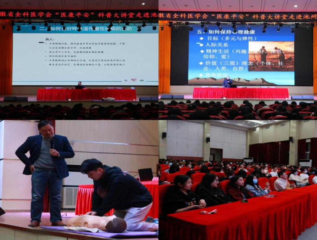 春季是传染病的高发季节,为进一步提高大学生春季常见疾病预防能力,增强自我保健意识,提高对突发事件的应急处置能力,增强同学们的心理健康意识,3月16日晚,永利官网组织开展安徽省全科医学会“医康平安”科普大讲堂走进77779193永利官网活动,安徽省全科医学会秘书长、中华全科医学杂志社社长陈开地教授带队,蚌埠医学院主任医师吴晓飞教授,蚌埠医学院心理医学专家李志刚教授,安徽省全科医学会秘书陈子康等一行4人,为永利官网师生带来了一场生动精彩的医学科普讲座。