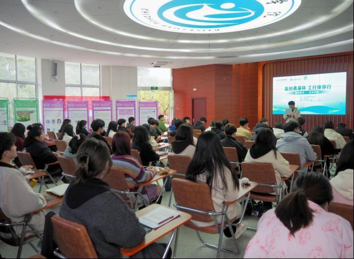 活动中,唐佑国同学和张群同学作为本校往届“挑战杯”“青苗杯”优秀选手分享了参赛经验,以“创意、创新、创业”为立足点,分享内容颇为丰富,包括参赛准备、项目选题、组建团队、材料完善等,对备赛过程中的注意事项进行了全面而细致的讲解,并告诉同学们要做好时间管理以及树立正确的竞赛观。