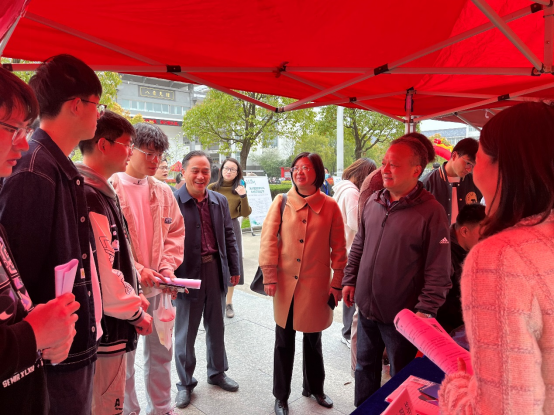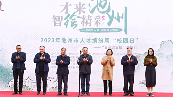 3月31日,池州市2023年人才缤纷周“百企进百校”人才专场招聘会在永利官网图书馆前广场举行。院党委委员、副院长阳光宁出席并致辞,市人社局党组书记、局长林芳等参加了招聘活动。