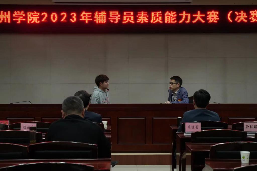 本次辅导员素质能力大赛分为基础知识测试、主题班会、案例研讨、谈心谈话四个项目。决赛围绕案例研讨、谈心谈话两个项目展开,综合考察辅导员的教育引导能力、组织协调能力、语言表达能力等方面的专业素养。比赛紧贴学生工作中的思想理论教育和价值引领、学风建设、心理健康教育、疫情防控、人际关系、资助育人、就业创业等热点问题,选手们的精彩表现赢得了现场阵阵掌声,现场观众热情高涨,气氛活跃。经过激烈角逐,最终机电工程学院陈周庆老师摘夺桂冠,旅游与历史文化学院、大数据与人工智能学院、材料与环境工程学院获得优秀组织奖。