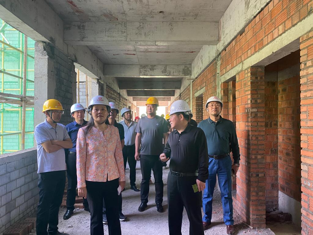 校领导还在施工单位负责人陪同下,进入学生宿舍内,详细了解工程进度、房间结构、配套生活学习设施设计安装情况,并提出指导意见。