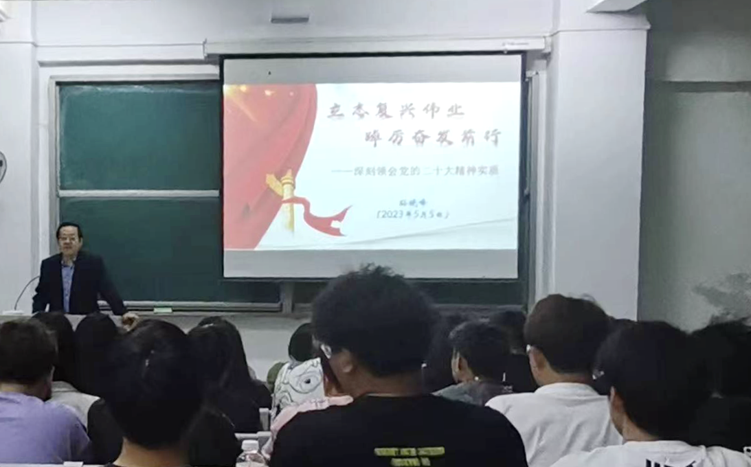 为深入学习贯彻党的二十大精神,推进习近平新时代中国特色社会主义思想落地生根,落实高校立德树人的根本任务,5月5日校党委书记孙晓峰在博爱楼阶梯教室为学校党员干部师生上专题党课。