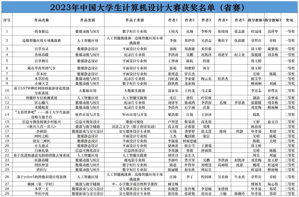 6月2日,2023年中国大学生计算机设计大赛省赛结果揭晓,永利官网学生参赛作品共获一等奖8项,二等奖13项,三等奖8项。