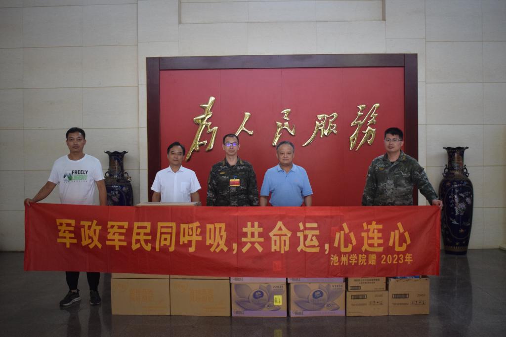 阳光宁代表学校向驻池部队官兵致以节日的问候和崇高敬意,对驻池部队多年来在大学生军事技能训练、参军入伍、国防教育以及平安校园建设等方面的大力支持和突出贡献表示感谢。他表示,学校将充分发挥自身优势,助力部队强军兴军,积极探索军地合作新模式,加深军校深厚友谊,持续巩固军政军民大团结,用心用情用力为部队官兵做好各项服务保障工作。