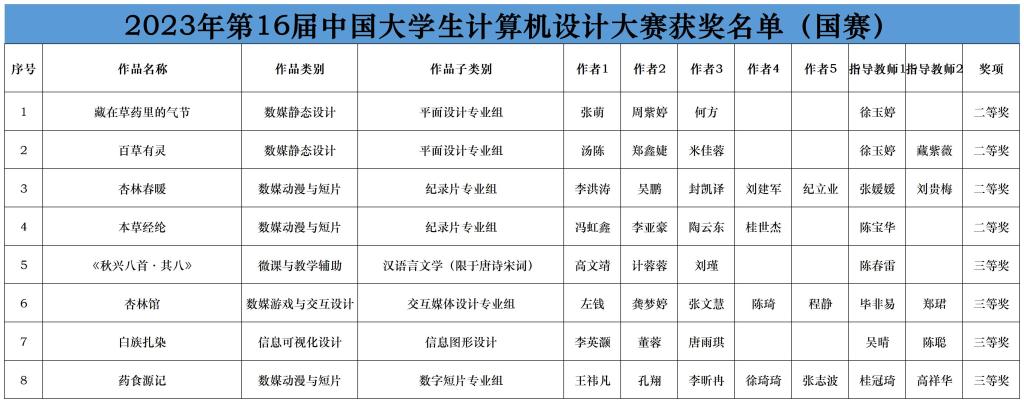 9月7日,第16届中国大学生计算机设计大赛的总评审工作落下帷幕。永利官网文学与传媒学院入围国赛作品共8件,现获国家级二等奖4项、三等奖4项的优异成绩。