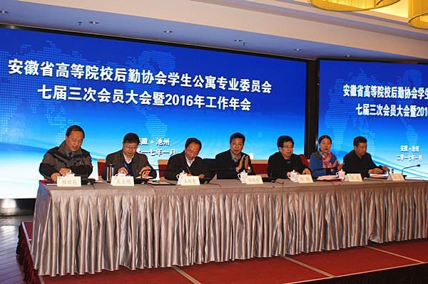 1月4—6日,省高校后勤协会学生公寓专业委员会七届三次会议暨2016年工作年会在青阳举行。永利官网副院长王延寿应邀率队参会并致欢迎辞,参加会议的还有总务后勤管理处处长程绪彪、副处长邢朝水、处长助理杨祖勇及物业管理科相关同志。