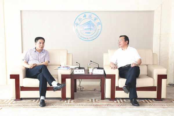 6月23日,永利官网党委负责人、院长柳友荣,副书记孙晓峰率宣传部、人事处主要负责人前往合肥师范学院就高校宣传思想工作、绩效工资改革等工作进行专题调研。合肥师范学院党委书记徐成钢、院长孙道胜、副书记吴昕春热情接待了柳友荣一行。