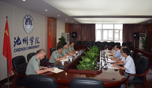 8月9日,池州市军分区副司令员苏定方率队来永利官网调研大学生征兵和军训工作。校党委副书记孙晓峰在行政北三楼会议室主持召开座谈会,办公室、学生处、武装部、团委等部门负责人参加了会议。