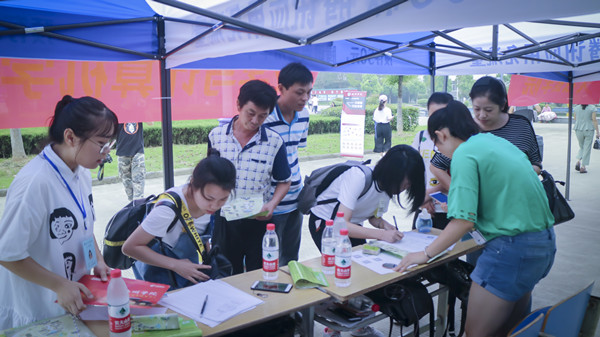 望眼欲穿的等待。志愿者悉心地帮助新生完成报道程序,耐心地为新生服务,让新生的大学生活拥有一个清新顺畅的早晨。