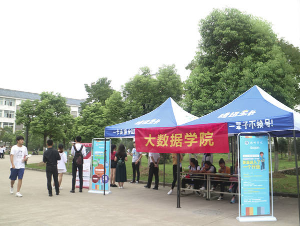 今年永利官网新设立了大数据学院,共有大数据和云计算两个专业。大数据学院服务站志愿者热心为新同学答疑解惑。