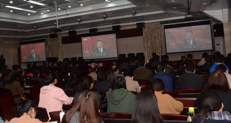 10月18日上午,中国共产党第十九次代表大会在北京人民大会堂隆重召开,习近平总书记代表十八届中央委员会向大会作报告。9时,校领导董兆武、柳友荣、孙晓峰、王延寿、汪海、阳光宁、汪贤才,职能部门科级以上干部、二级学院班子成员、马克思主义学院教师,学生党员代表等近200人聚集一堂共同收看了开幕会直播。