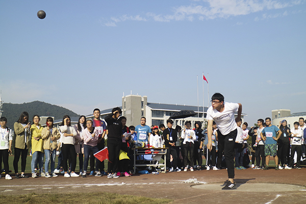 倾尽全力,孤注一掷。来自商学院的15财务管理1班的崔权同学在男子甲组铅球比赛中真正做到了突破自我,再度夺魁。