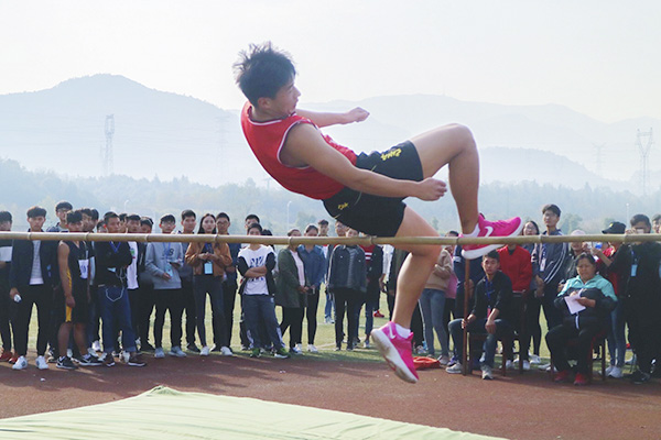 身前如燕,纵身一跃。机电工程学院16机制的葛雪刚将本届运动会跳高桂冠摘入囊中。