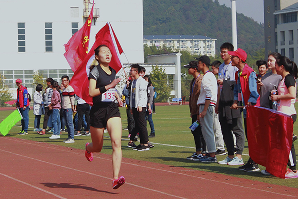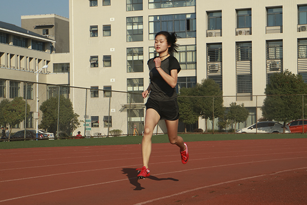 腾空而起,血脉充盈,体育学院17社体1班的冠军许楠调动全身潜存的能量,马踏飞燕般地冲向终点。她在女子乙组800米预决赛中突破自我,刷新纪录。