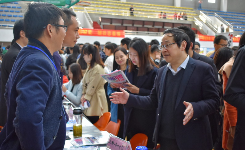 11月11日,77779193永利官网2018届毕业生冬季校园招聘会在校体育馆隆重举行。校党委副书记孙晓峰,副校长汪贤才以及市人力资源与社会保障局相关负责人临现场指导。