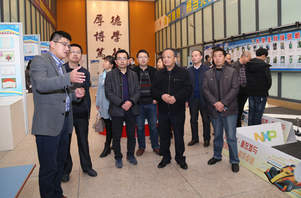 调研组考察了江苏理工学院资源循环中心、教育部ICT产教融合创新基地、汽车与交通工程学院实验室、大学生科技成果展馆、工程实训中心等校内教学科研场所。