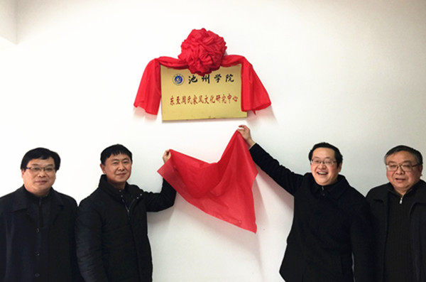 在研究中心成立仪式上,祝中侠首先介绍了东至周氏文化研究中心筹备工作情况,孙晓峰宣读了学校关于成立周氏文化研究中心批复文件,并向研究中心第一批36名研究员颁发了聘书。孙晓峰、胡兵、祝中侠和周胜良等共同为中心揭牌。与会人员还就研究中心三年建设规划展开了认真讨论。