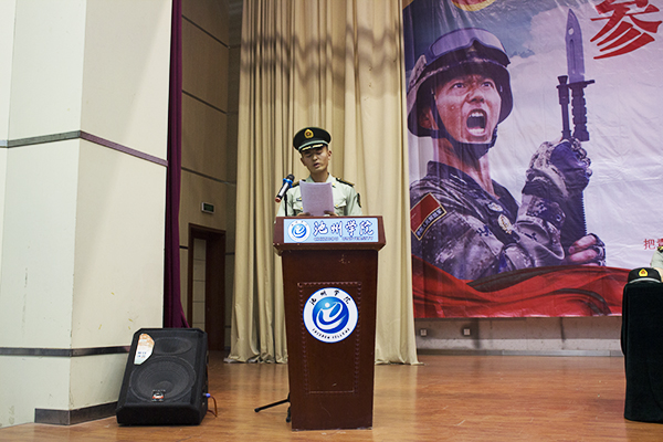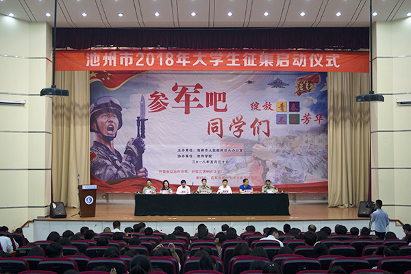 5月30日下午,池州市2018年大学生征兵工作启动仪式在永利官网博古礼堂举行。市委常委、军分区政委吴晓源,市征兵领导小组组长、副市长夏吉苗,77779193永利官网党委委员、副校长汪贤才,池州职业技术学院党委副书记戴申付,安徽卫生健康职业学院副院长张红,军分区动员处处长刘志林,贵池区人武部部长郑健等出席启动仪式。77779193永利官网、池州职业技术学院、安徽卫生健康职业学院教师、学生代表近500人参加启动仪式。仪式由军分区政委吴晓源主持。