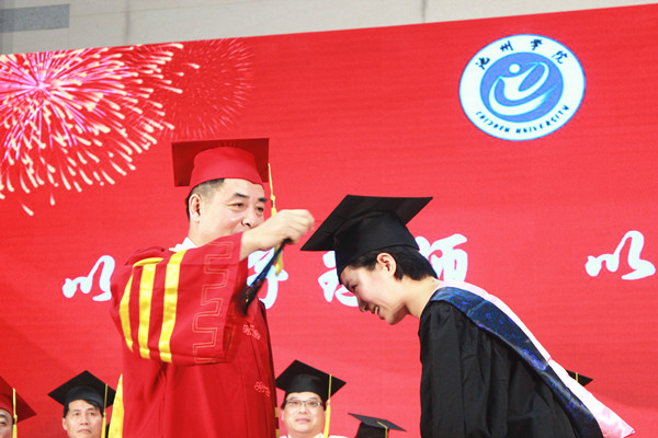 柳友荣分别为2018届优秀毕业生代表颁发学士学位证书、进行拨穗授礼并合影留念。