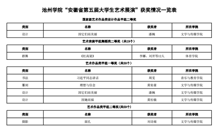 近期,安徽省第五届大学生艺术展演活动评选结果揭晓,永利官网获奖颇丰,共有各类奖19项,其中艺术作品类荣获一等奖6项,二等奖1项,三等奖3项;艺术表演类二等奖1项;艺术论文类二等奖2项,三等奖3项;高校校长书画摄影作品校长风采奖3项。尤其是文学与传媒学院潘婉同学创作的设计类甲组作品《因它们而美丽》荣获国家级二等奖(指导教师:魏鸿飞)。另外有8人荣获优秀指导教师奖。
