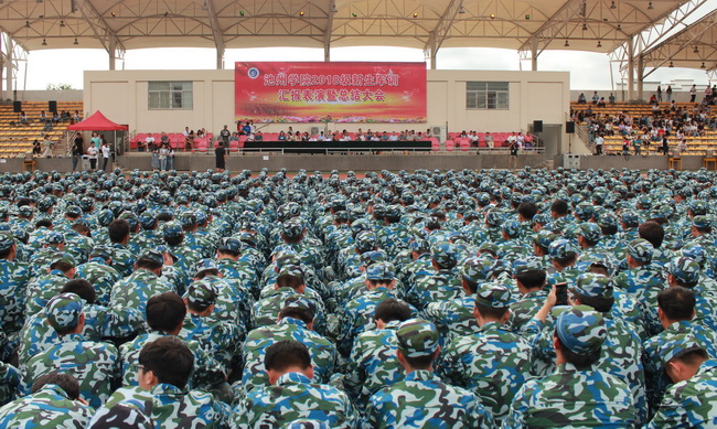 副校长阳光宁做总结讲话。他代表学校党政向关心军训工作的部队首长、教官和辅导员表示崇高敬意和衷心感谢,高度赞扬2018级学员在训练场上展示出了良好的精神风貌、严谨的纪律意识和高涨的爱国热情。他指出,军训成绩的取得与教官的悉心指导、二级学院的密切配合以及新生辅导员的辛勤劳动密不可分。阳光宁希望,2018级新生保持军人作风,增强团队意识,巩固军训的成果,把军训中的好思想好作风转化为成长成才的动力,转化为良好的学风。要发奋学习,创新发展,学会做人,做一个理想远大、热爱祖国的人,做一个德才兼备、全面发展的人,做一个有益于人民的人。他祝愿同学们在未来的大学生活中再创新的辉煌。
