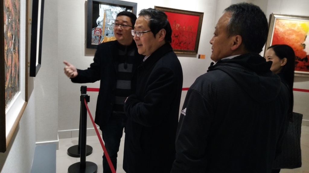 12月4日上午,校领导孙晓峰、王延寿、阳光宁、汪贤才参观了“安徽省首届漆画艺术作品展暨高校巡展”。