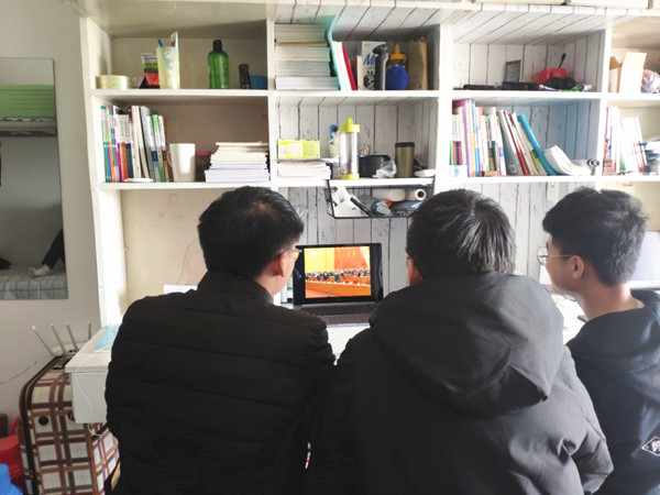 图为学生在宿舍收看大会直播