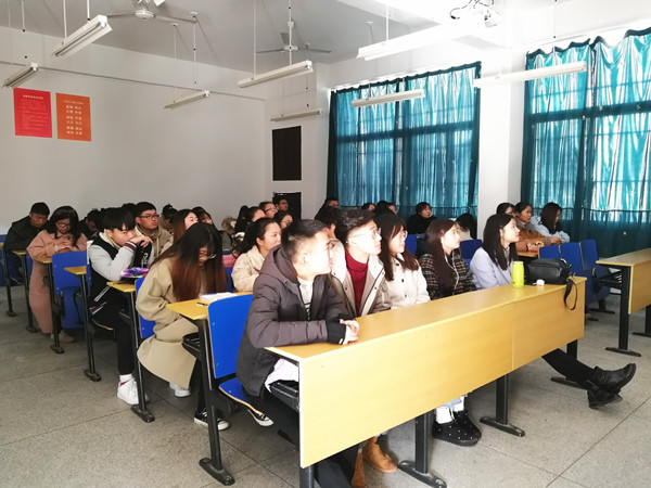 图为管理与法学院师生集中收看大会直播(图片由管理与法学院提供)