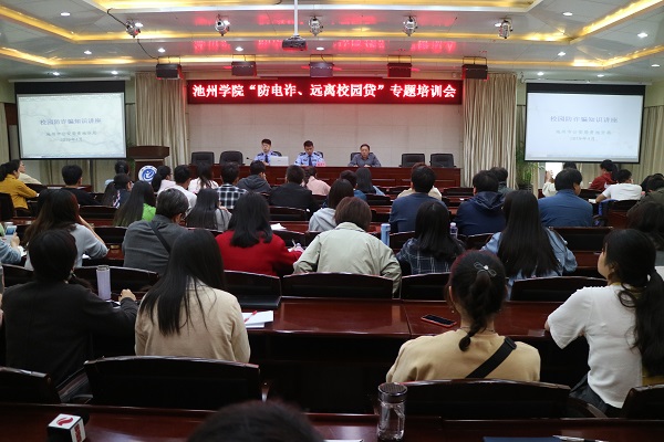 5月6日下午,永利官网在办公南二楼会议室开展“防电诈、远离校园贷”专题培训活动。活动邀请了市公安局贵池分局刑警大队队长王恩俊和治安大队队长廖敏担任主讲。全校辅导员和学生干部代表200余人参加培训会。